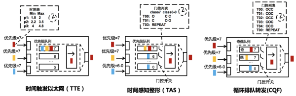 · 时间触发以太网(TTE):把时间戳打在包上,通过时间表控制包的发送,让每个包自己知道自己的发送时间,在发包侧就将各个包的发送时间隔开,严格保证时延抖动满足要求。